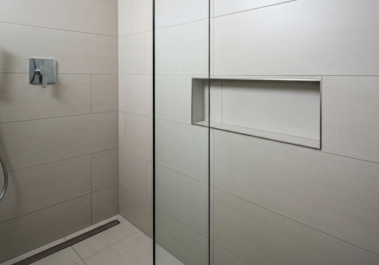 - Wykończenie: Płytki ceramiczne lub gresowe do okładziny ścian i podłogi, a także do wykonania półki w niszy, jeśli taką planujesz. Płytki ceramiczne muszą być odpowiednie do stref mokrych.